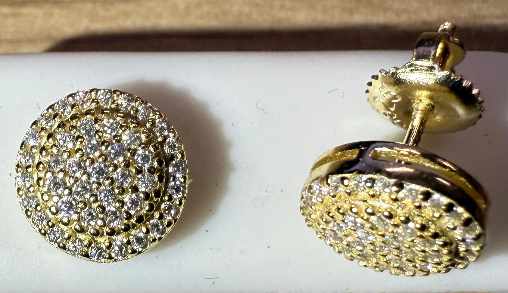 Gold Over Sterling Silver VVS1 Moissanite Stud Halo Screw Back 0.72 ct Earrings