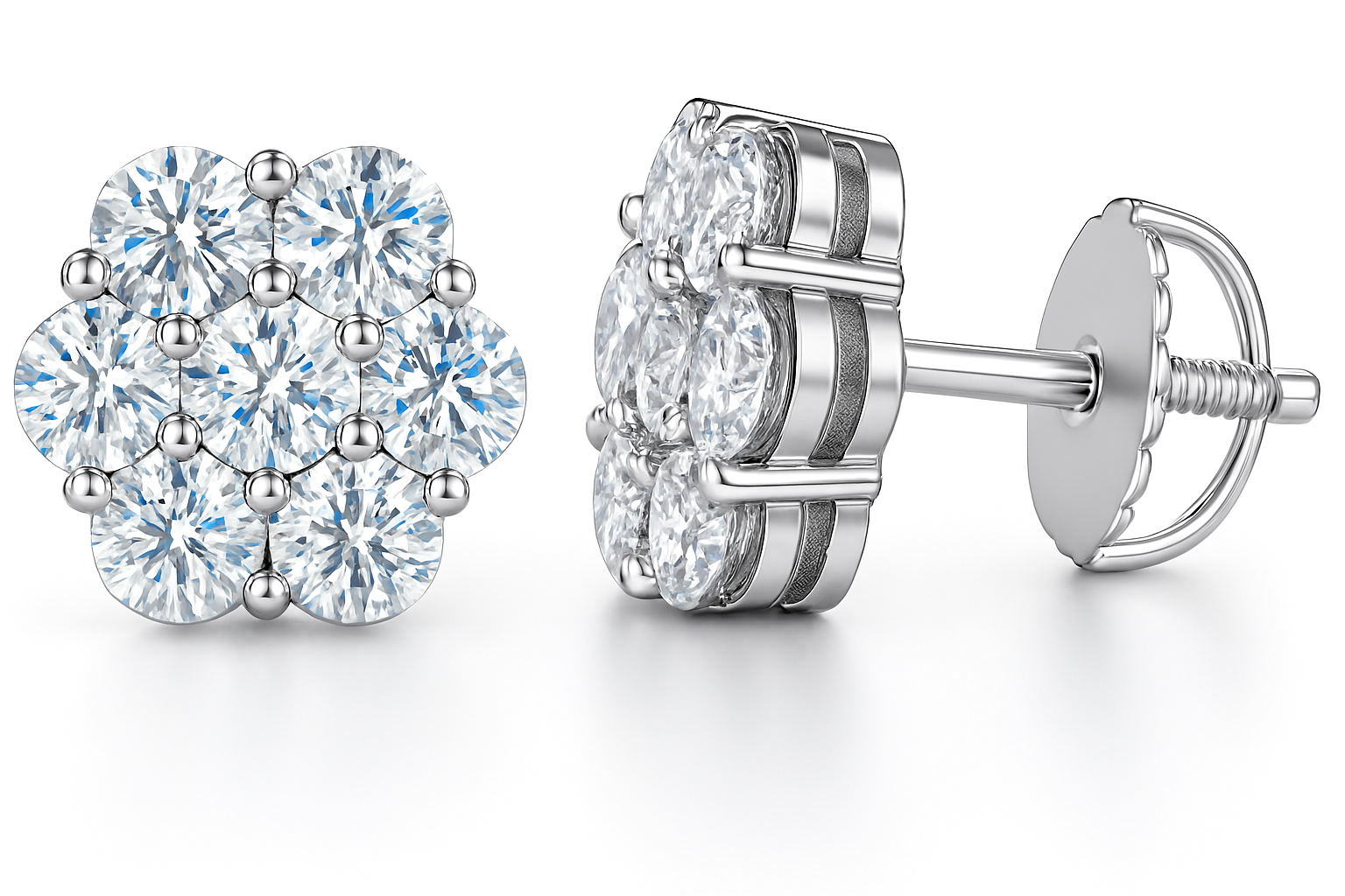 Sterling Silver VVS1 Moissanite Stud Flower Screw Back 0.75ct Solid 925 Earrings