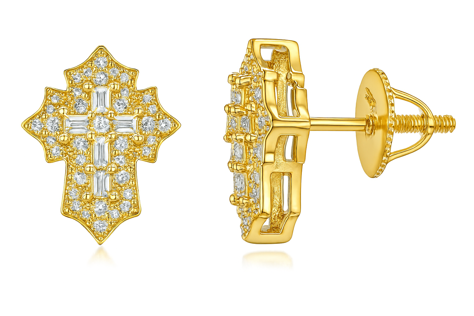 Gold Over Sterling Silver VVS1 Moissanite Stud Cross Screw Back 0.36 ct Earrings