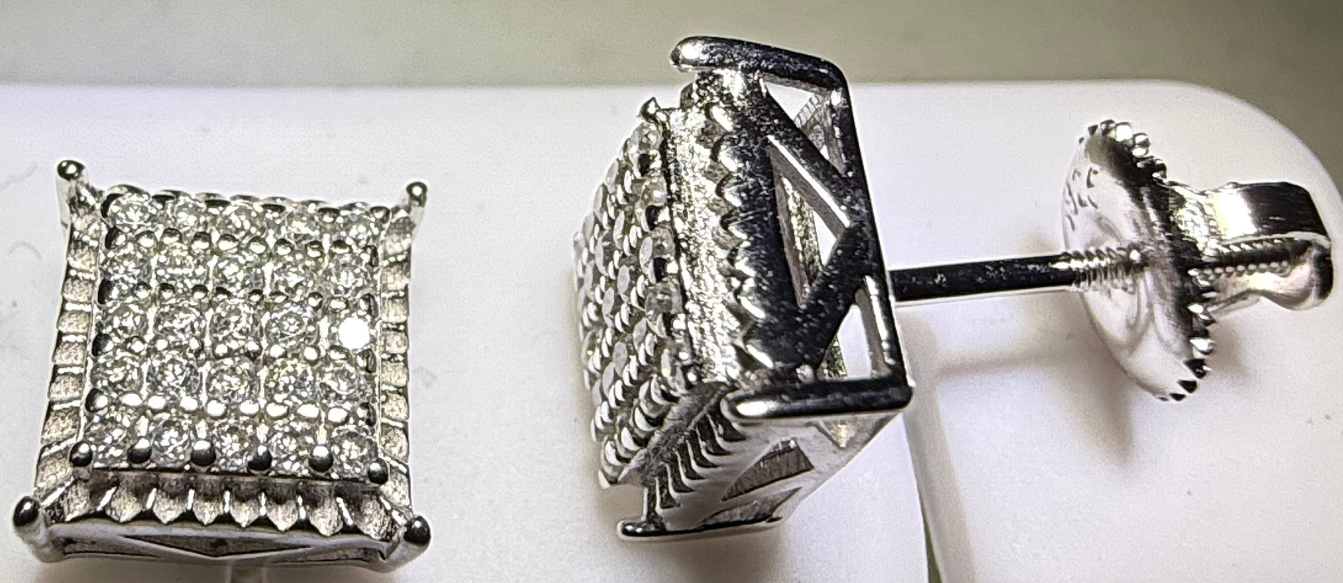 Sterling Silver VVS1 Moissanite Stud Square Micro Screw Back 0.5 ct 925 Earrings