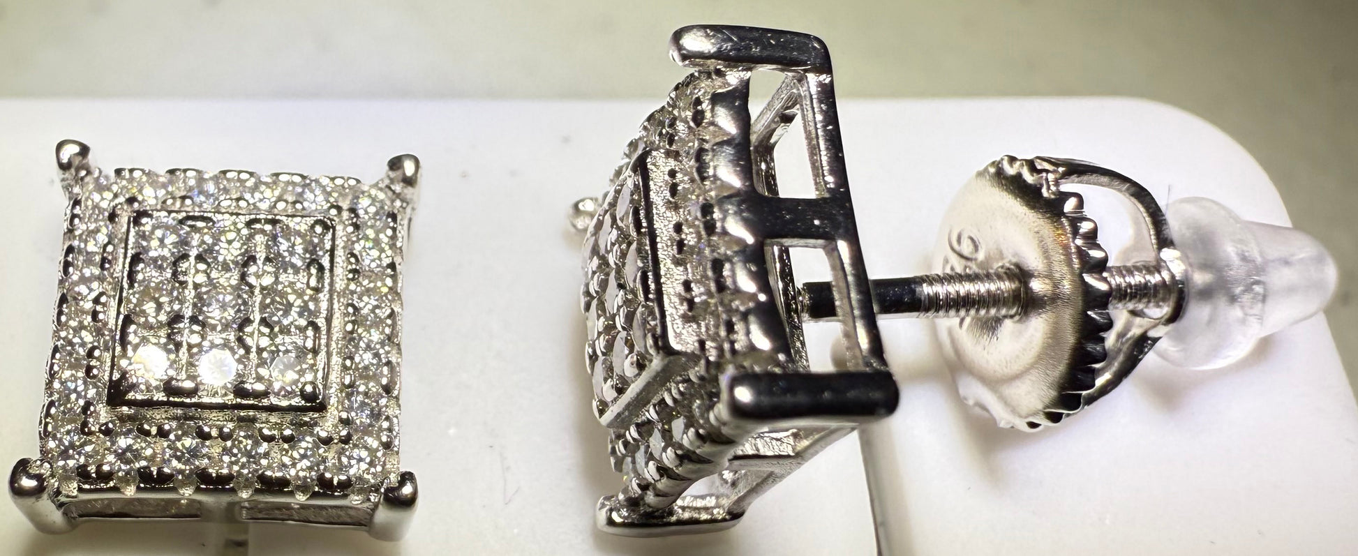 Sterling Silver VVS1 Moissanite Stud Square Micro Screw Back 0.39 ct Earrings