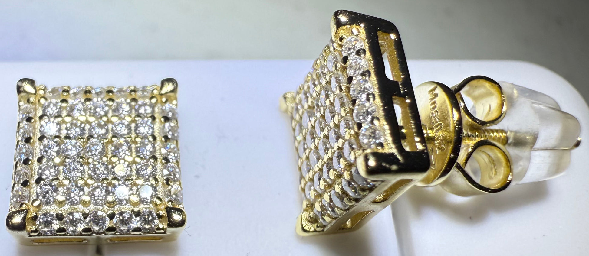 Gold Over Sterling Silver VVS1 Moissanite Stud Square Screw Back 0.64ct Earrings