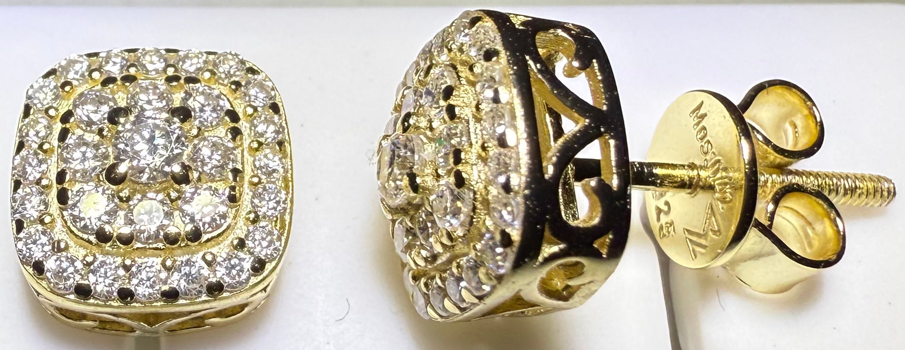 Gold Over Sterling Silver VVS1 Moissanite Stud Halo Screw Back 0.84 ct Earrings