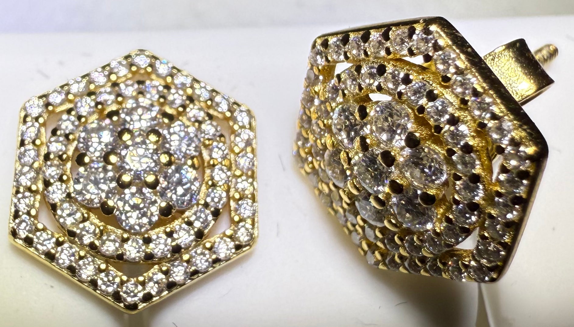 Gold Over Sterling Silver VVS1 Moissanite Hexagon Screw Back 0.75 ct Earrings