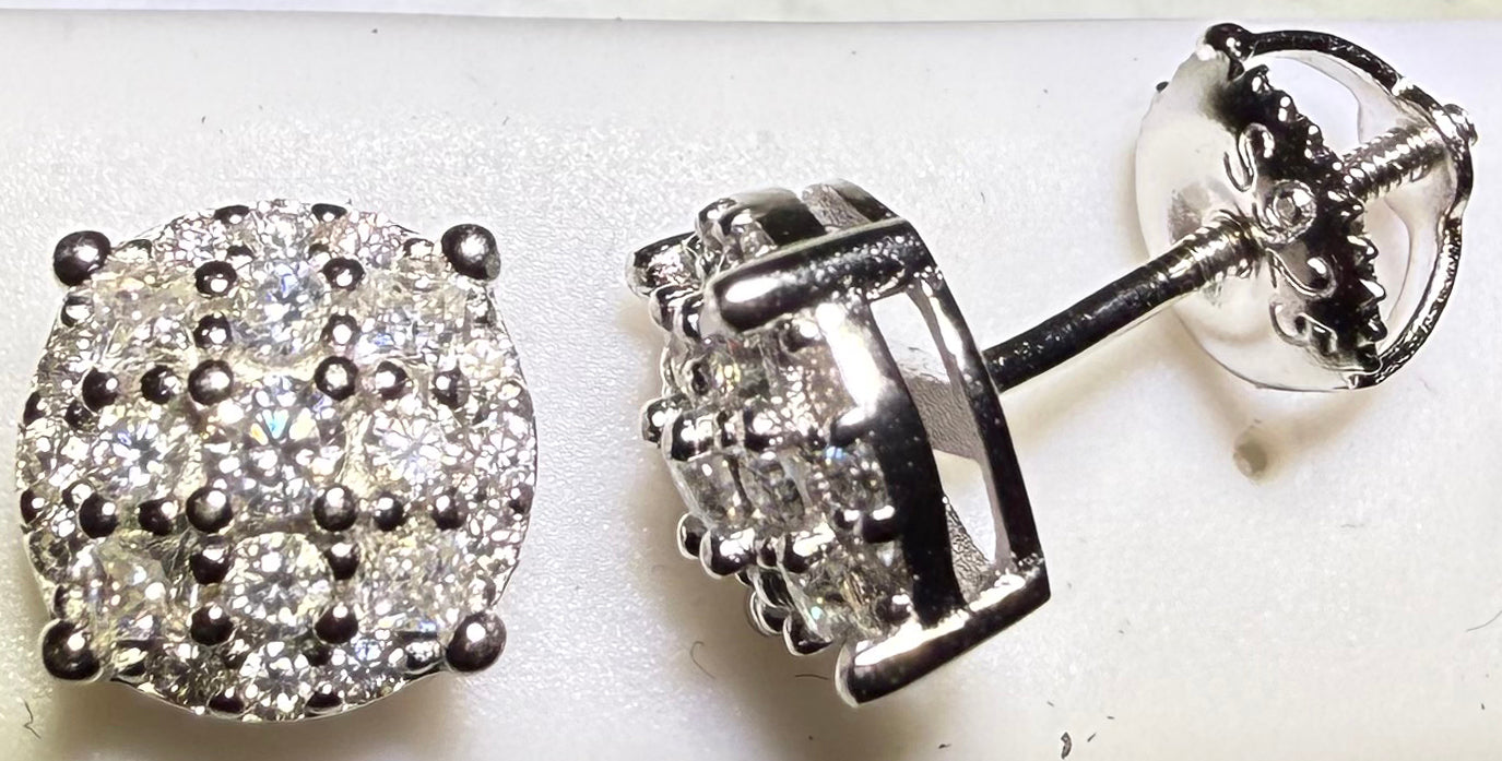 Sterling Silver VVS1 Moissanite Stud Convex Circle Screw Back 0.96 ct Earrings