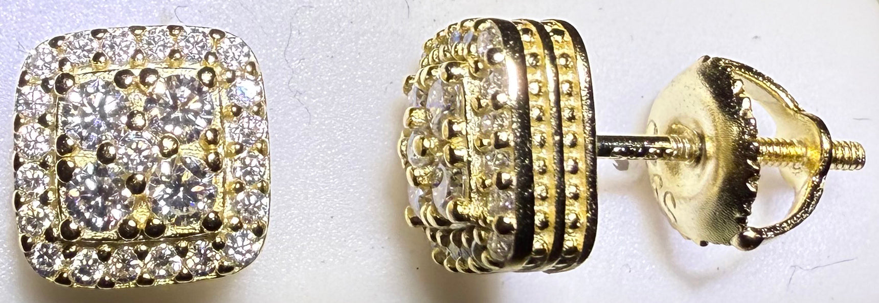 Gold Over Sterling Silver VVS1 Moissanite Stud Halo Screw Back 0.84 ct Earrings