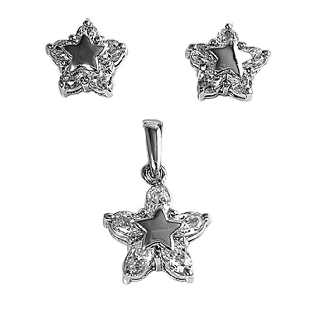 Star Halo Earrings Clear Simulated CZ .925 Sterling Silver Pendant Set