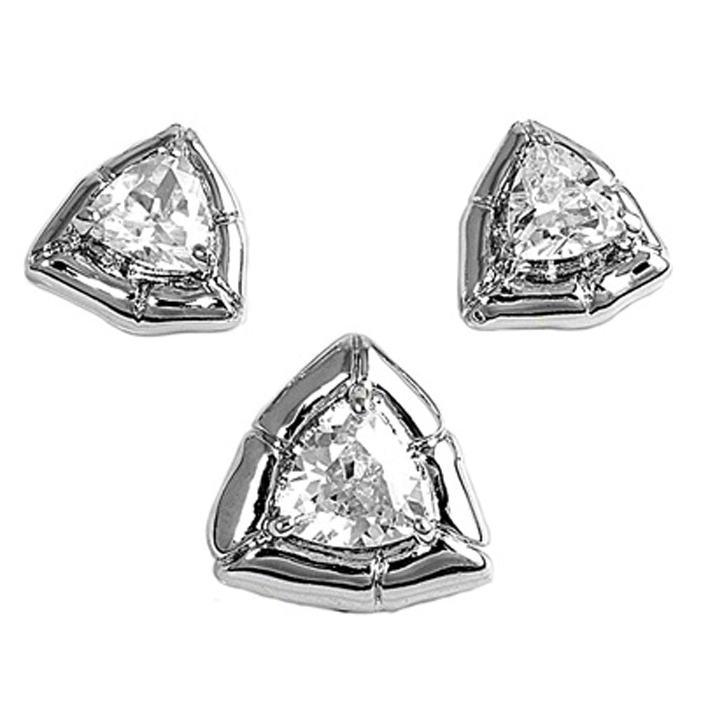 Trillion Earrings Clear Simulated CZ .925 Sterling Silver Pendant Set
