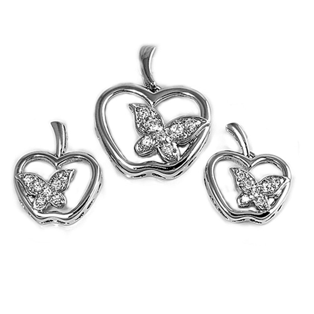 Butterfly Apple Earrings Clear Simulated CZ .925 Sterling Silver Pendant Set