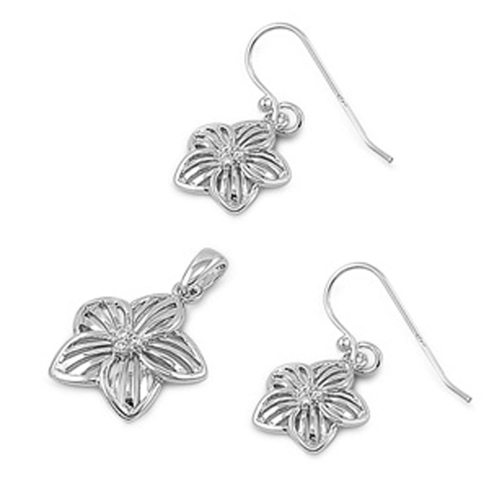 Flower Earrings Clear Simulated CZ .925 Sterling Silver Pendant Set