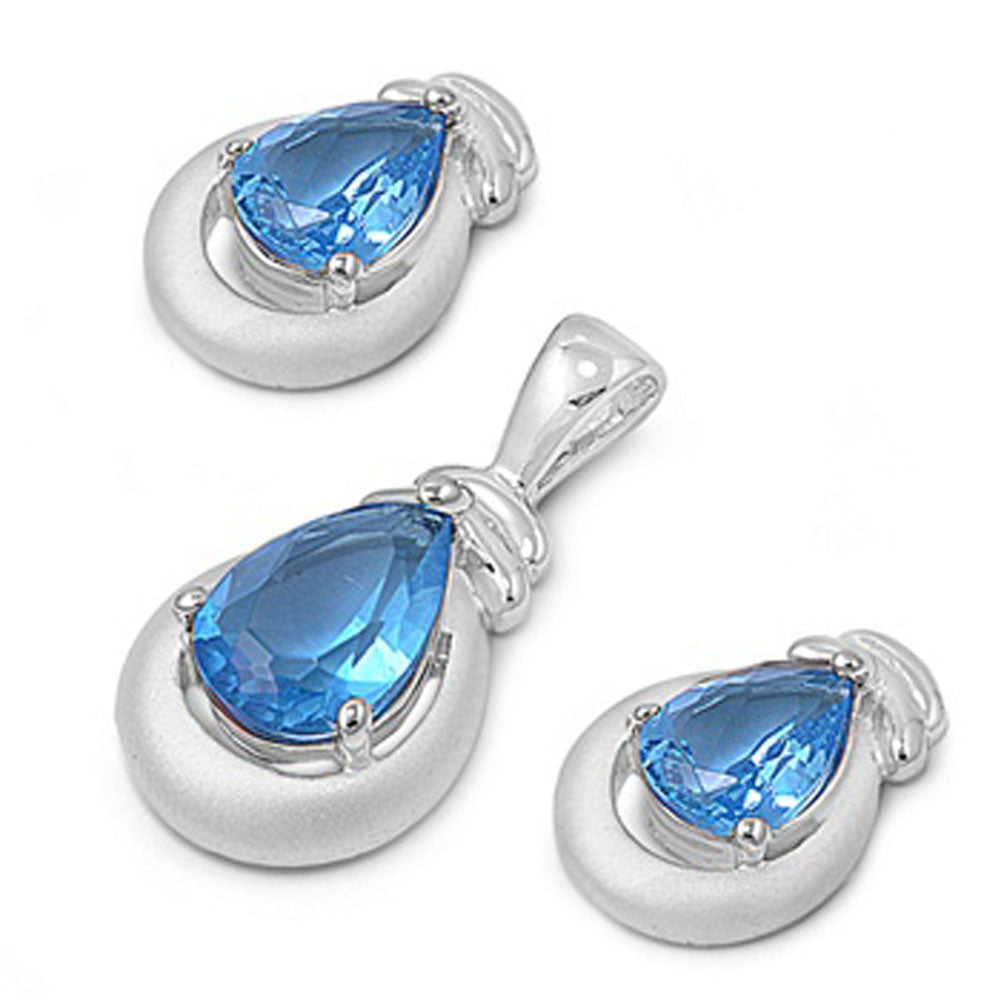 Teardrop Frosted Earrings Blue Simulated Topaz .925 Sterling Silver Pendant Set