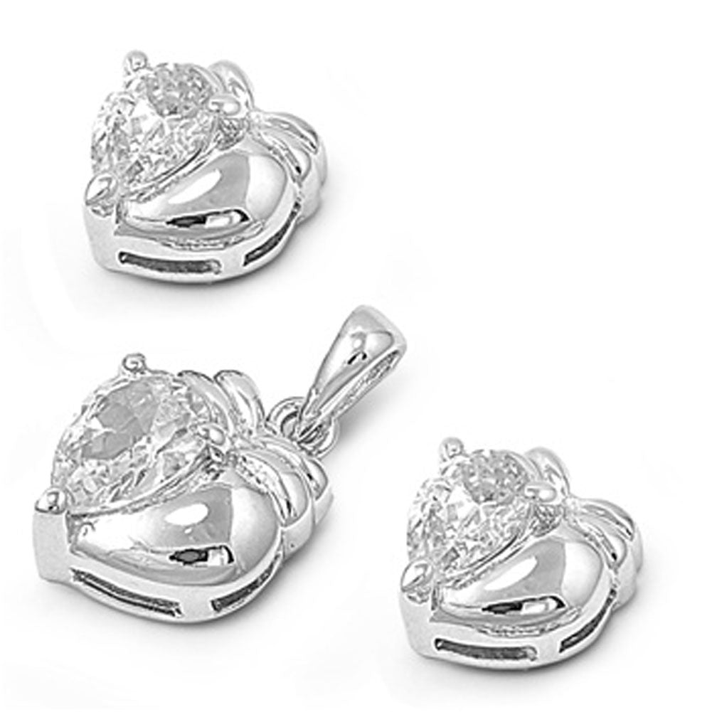 Heart Earrings Clear Simulated CZ .925 Sterling Silver Pendant Set