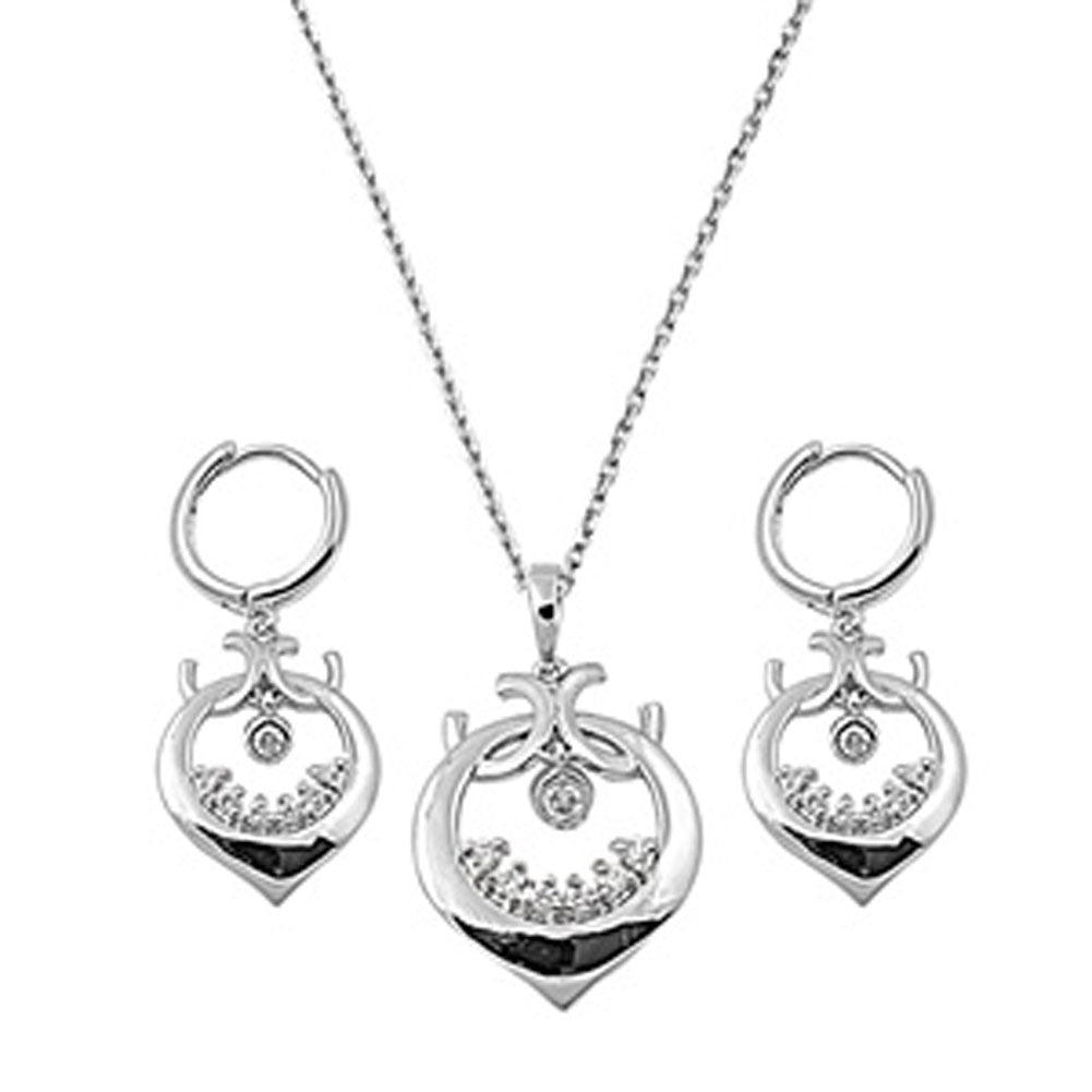 Earrings Clear Simulated CZ .925 Sterling Silver Pendant Set
