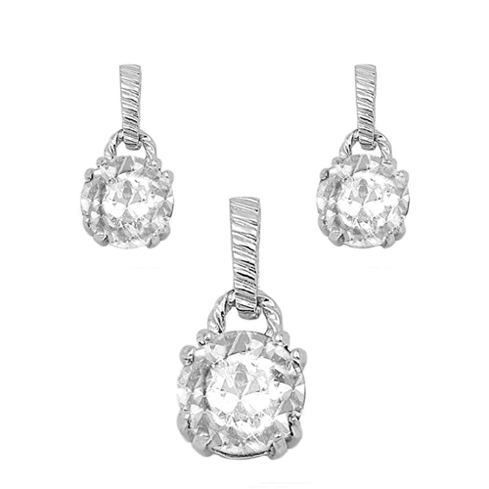 Sparkly Dangle Circle Clear Simulated CZ .925 Sterling Silver Round Rope Earrings Pendant Set
