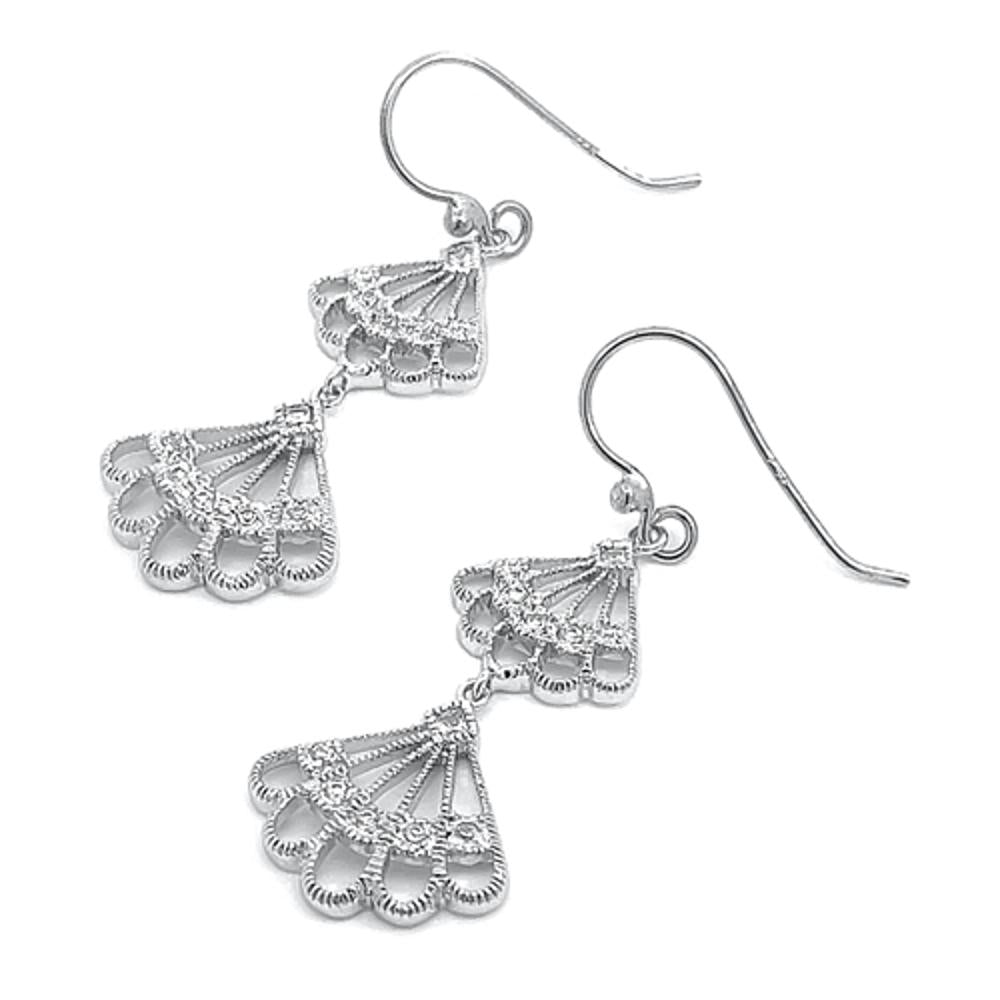 Sterling Silver Cute Elegant Vintage Style Fan Dangle Drop Earrings 925 New