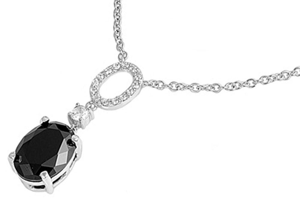 Oval Solitaire Pendant Necklace Clear Simulated CZ Black Simulated CZ .925 Sterling Silver, 18"