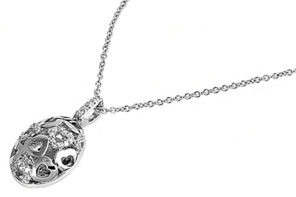Oval Pendant Heart Necklace Clear Simulated CZ .925 Sterling Silver, 18"