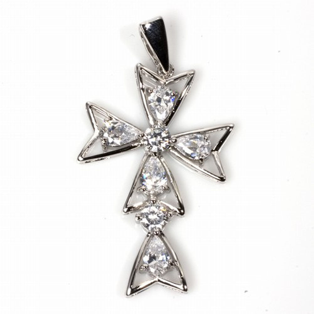 Sterling Silver Clear CZ Cross Pendant Modern Geometric High Polish Charm 925