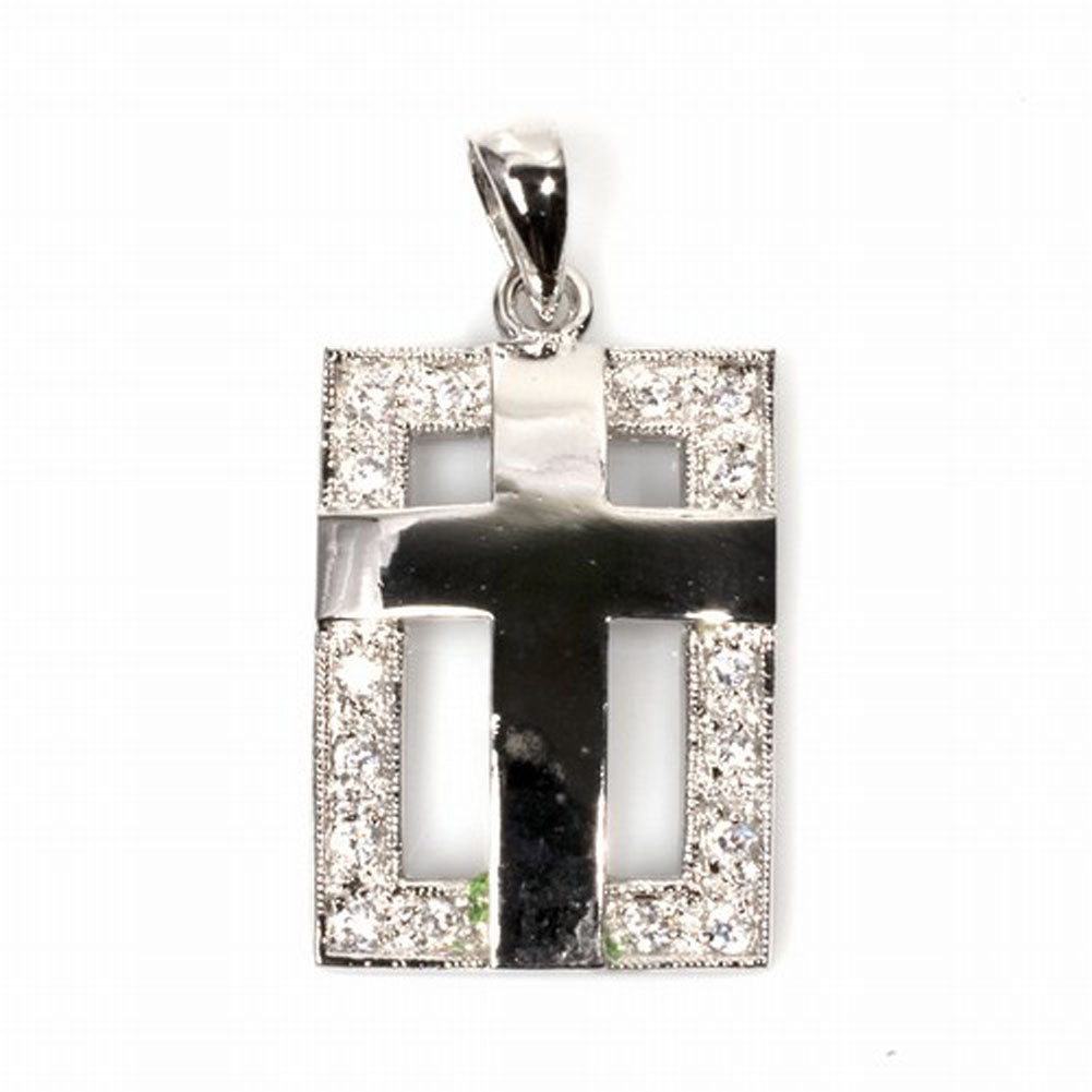 Sterling Silver Clear CZ Bold Cross Pendant Geometric Chunky Cutout Charm 925