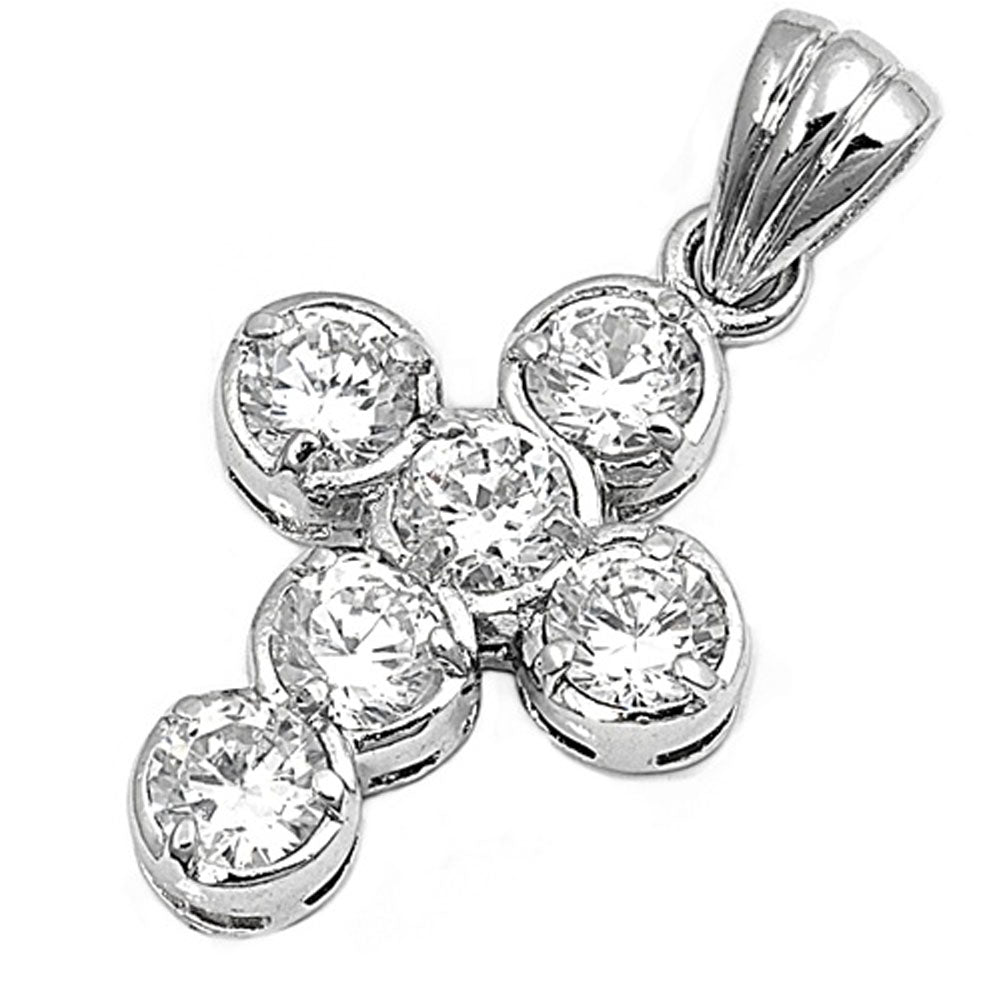 Bold Circle Studded Cross Pendant Clear Simulated CZ .925 Sterling Silver Charm