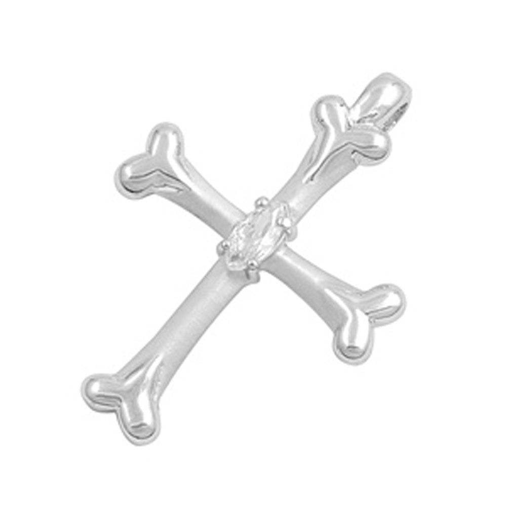 Minimalist Simple Cross Pendant Clear Simulated CZ .925 Sterling Silver Charm