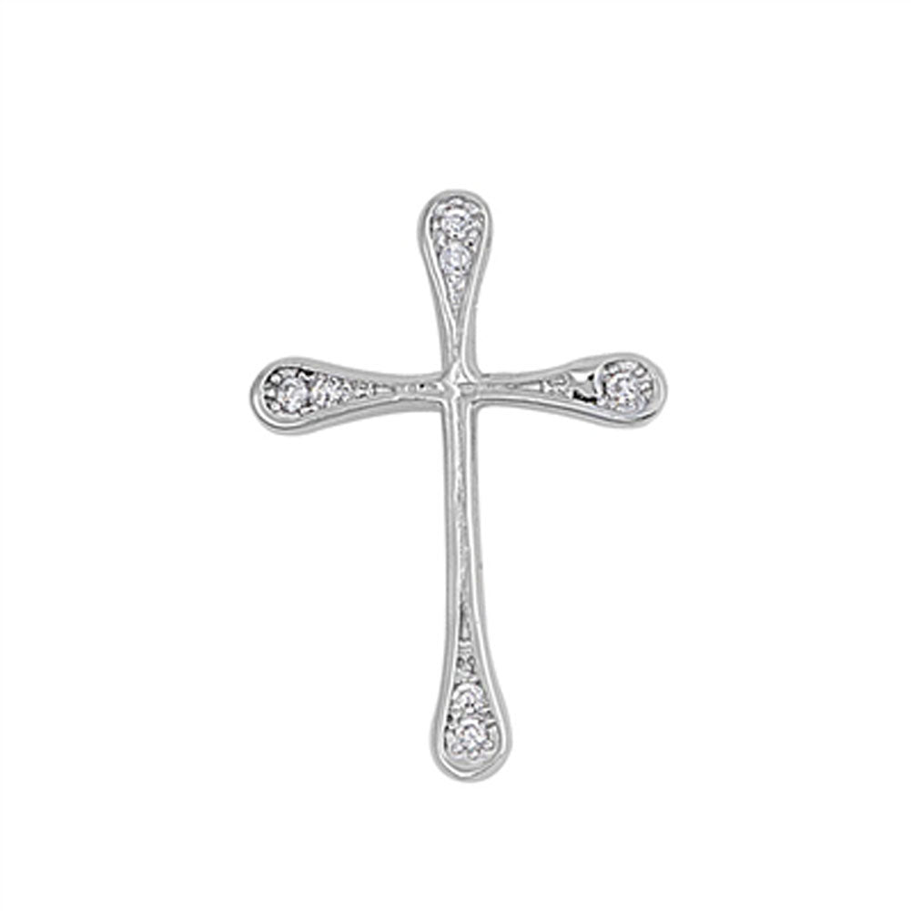 Simple Vintage Cross Pendant Clear Simulated CZ .925 Sterling Silver Charm