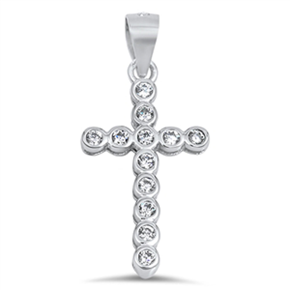 Repeating Circles Cross Pendant Clear Simulated CZ .925 Sterling Silver Charm