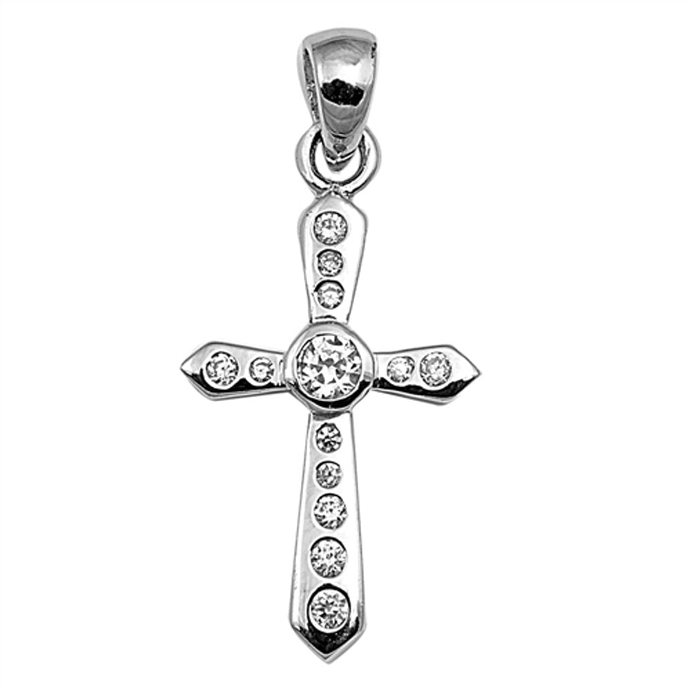 Modern Studded Cross Pendant Clear Simulated CZ .925 Sterling Silver Charm
