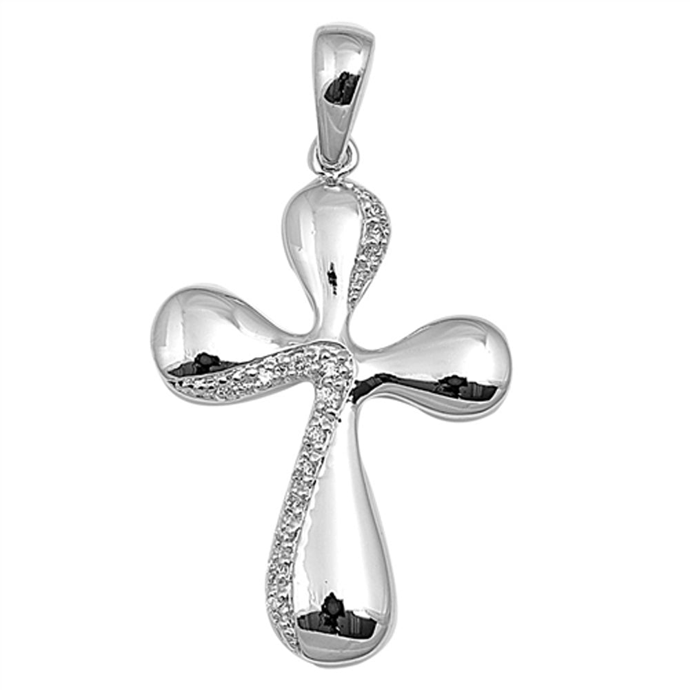 Abstract Rounded Edge Studded Cross Pendant .925 Sterling Silver Retro Charm