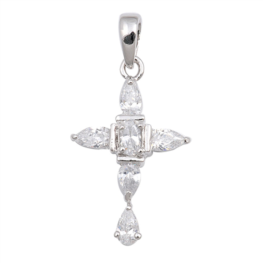 Vintage Studded Cross Pendant Clear Simulated CZ .925 Sterling Silver Charm