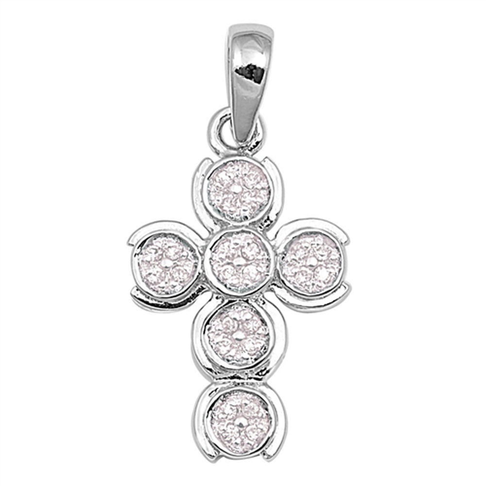 Small Chunky Circle Cross Pendant Pink Simulated CZ .925 Sterling Silver Charm