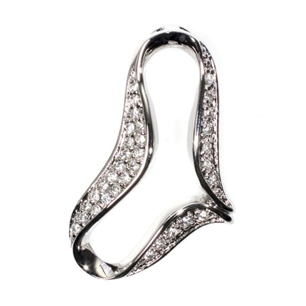 Abstract Ribbon Heart Pendant Clear Simulated CZ .925 Sterling Silver Charm
