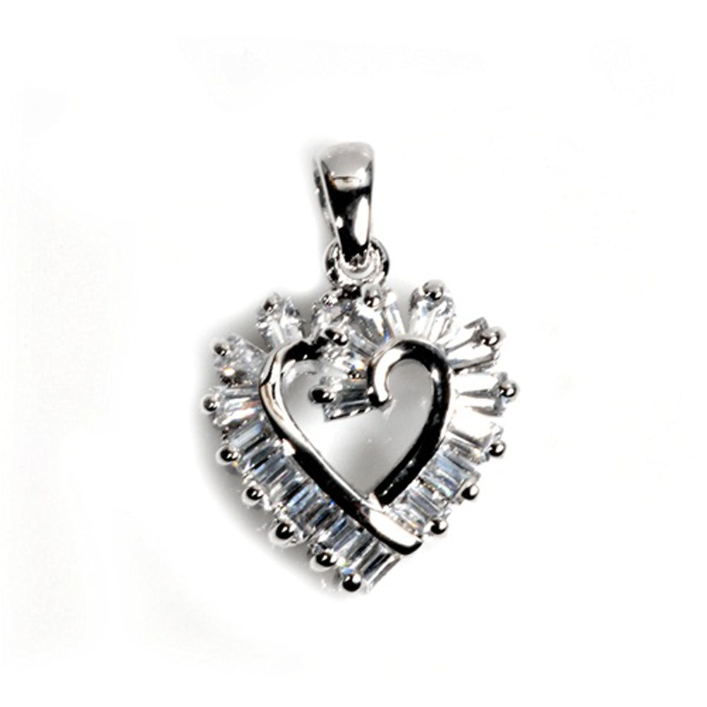 Sterling Silver Vintage Clear CZ Heart Pendant Promise Elegant Classic Charm 925
