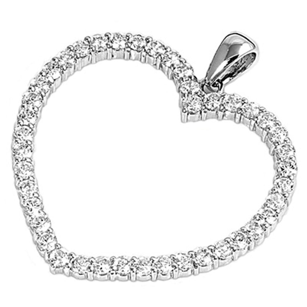 Sterling Silver Studded Wide Open Promise Heart Pendant Clear Simulated CZ Charm