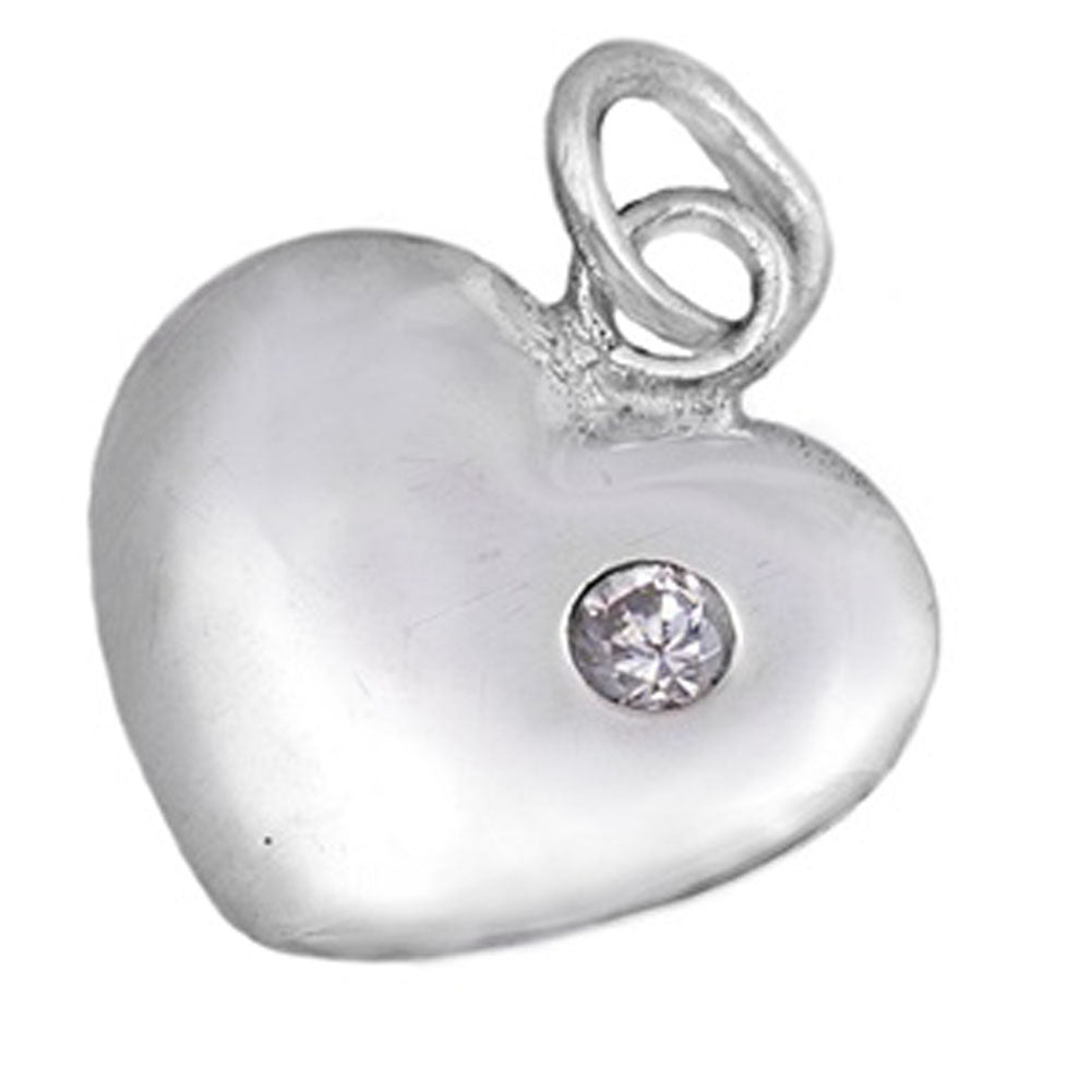 Sterling Silver Simple Matte Promise Heart Pendant Clear Simulated CZ Charm