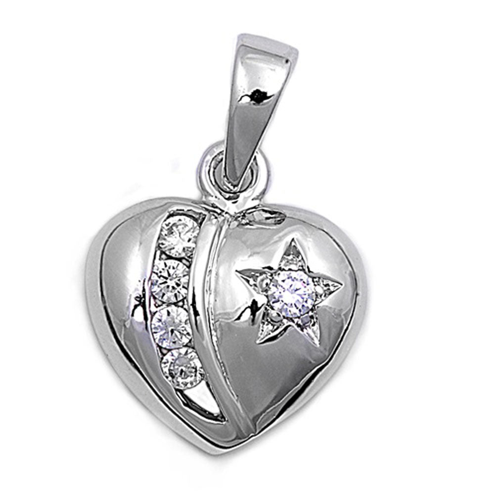 Sterling Silver Star Celestial Promise Heart Pendant Clear Simulated CZ Charm
