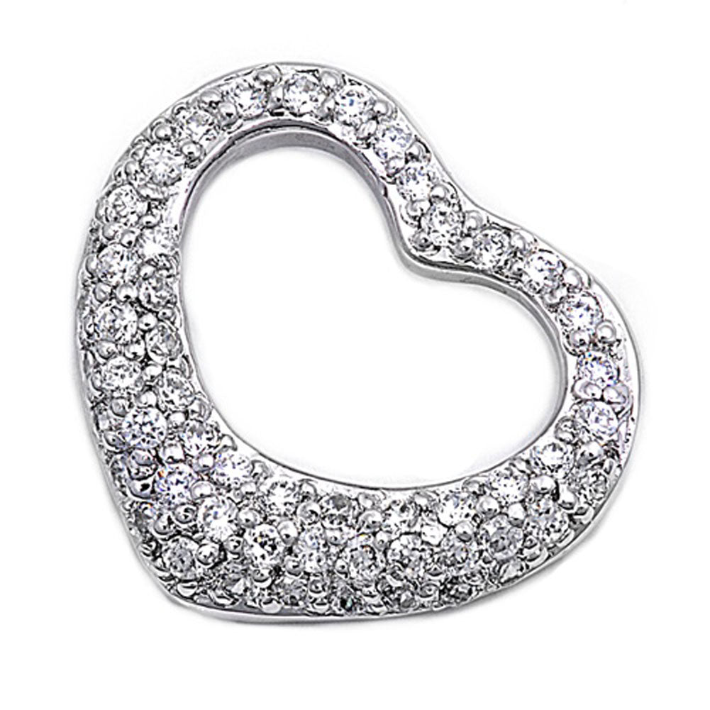 Ornate Open Heart Pendant Clear Simulated CZ .925 Sterling Silver Cluster Charm