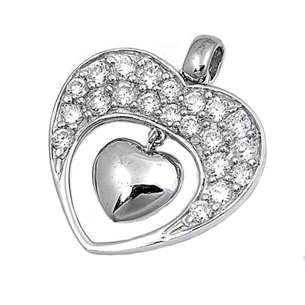 Cluster Promise Heart Pendant Clear Simulated CZ .925 Sterling Silver Charm