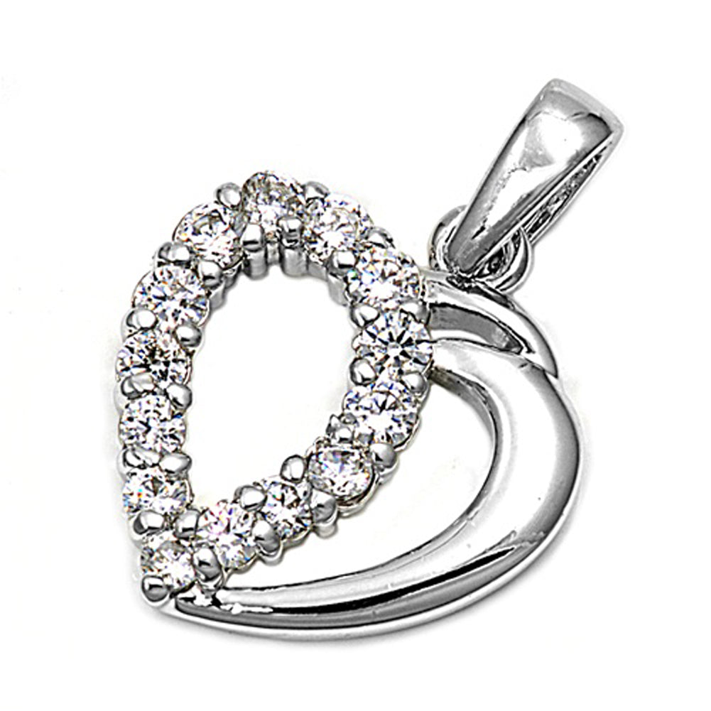 Pendant Cluster Teardrop Heart Clear Simulated CZ .925 Sterling Silver Charm
