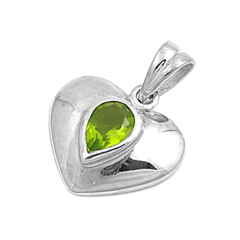 Sterling Silver High Polish Teardrop Heart Shiny Simulated Peridot Pendant Charm