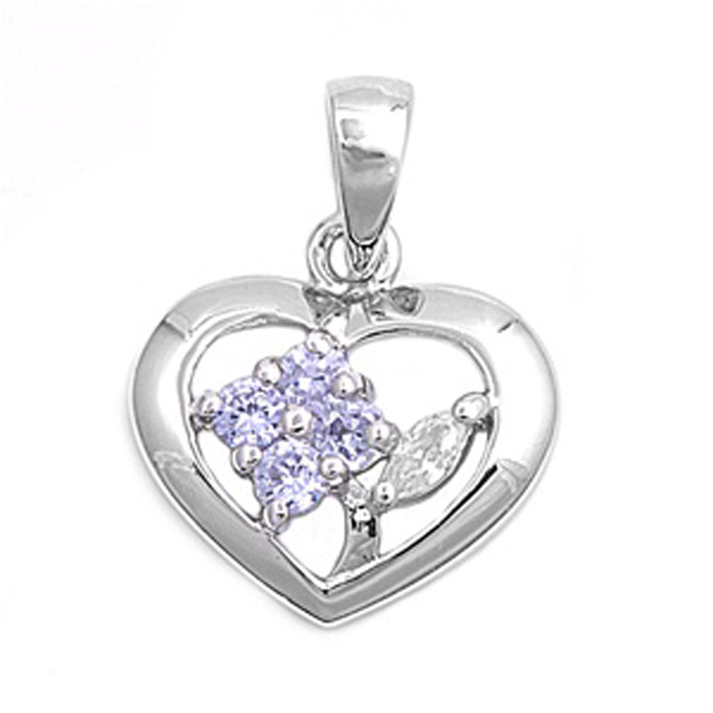 Sterling Silver High Polish Promise Heart Leaf Simulated Lavender Pendant Charm