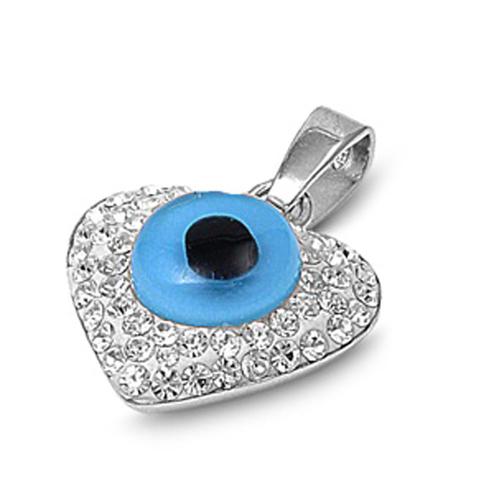 Sterling Silver Evil Eye Unique Promise Heart Pendant Clear Simulated CZ Charm