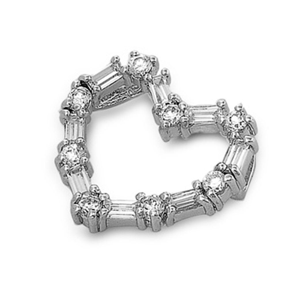 Sparkly Geometric Heart Pendant Clear Simulated CZ .925 Sterling Silver Charm