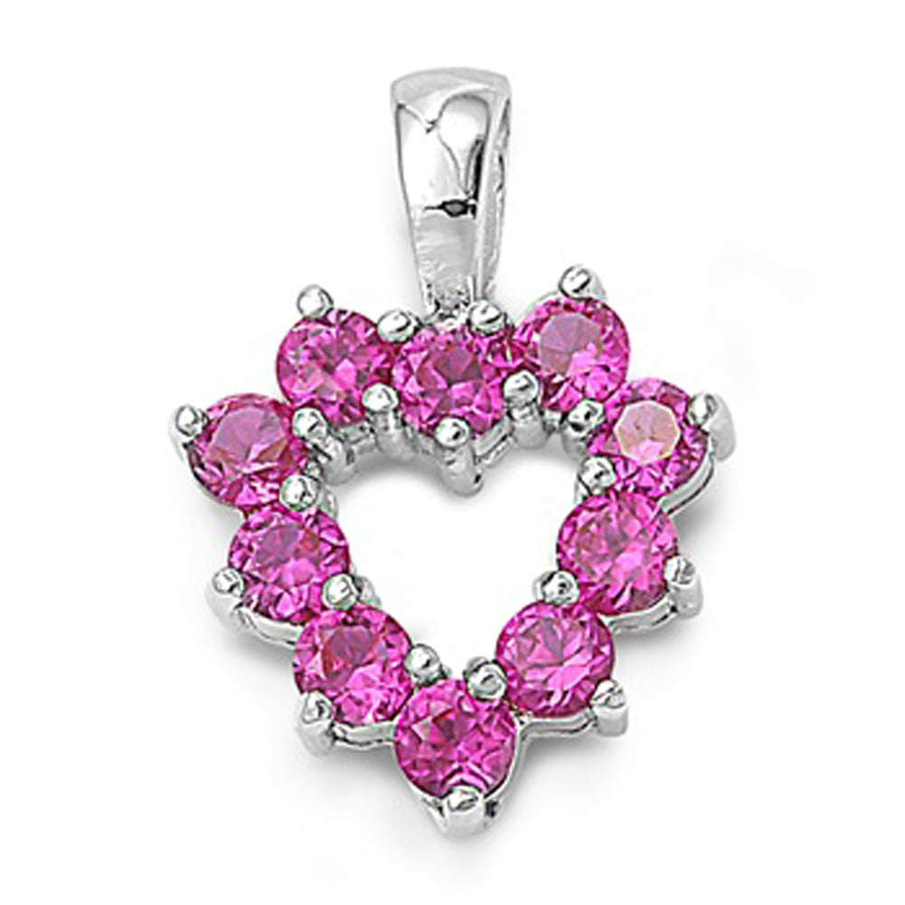 Halo Studded Promise Heart Pendant Pink Simulated CZ .925 Sterling Silver Charm