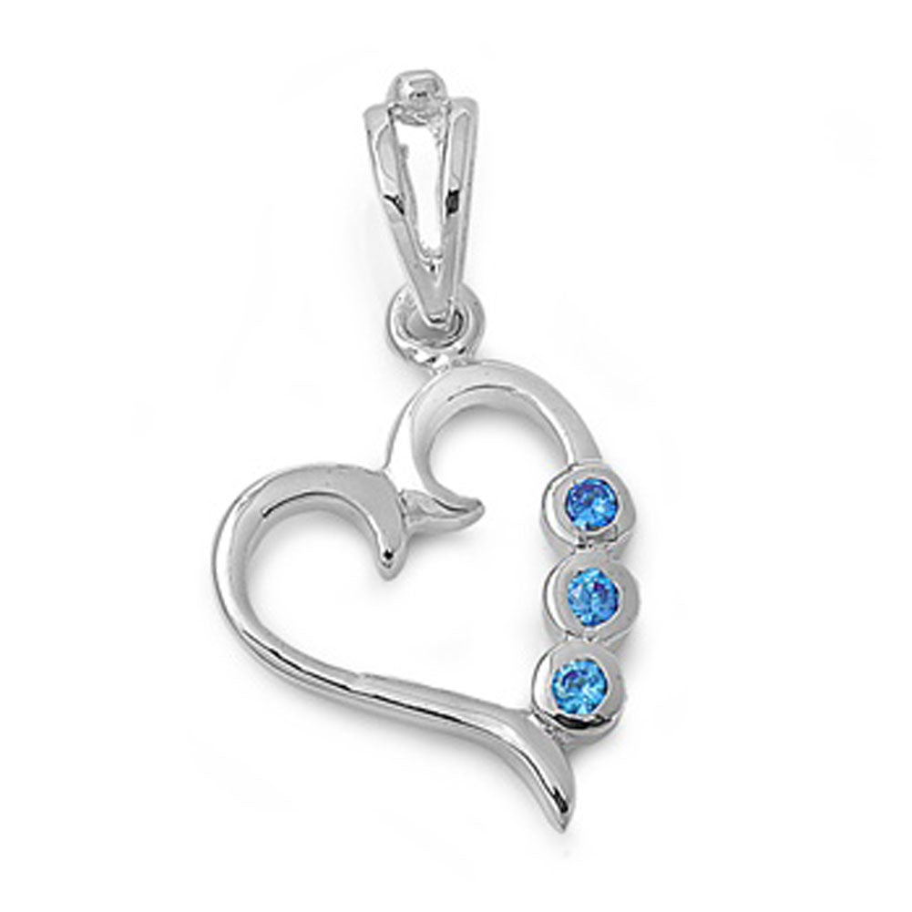 Sterling Silver Circle Filigree Swirl Heart Pendant Blue Simulated Topaz Charm