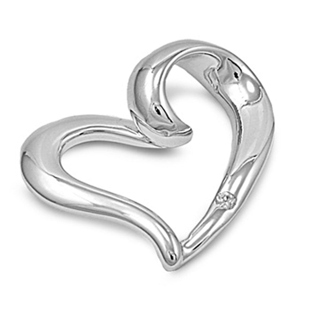 Sterling Silver Abstract Filigree Swirl Heart Clear Simulated CZ Pendant Charm