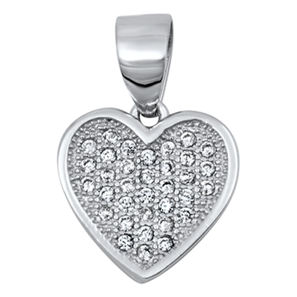 Studded Promise Heart Pendant Clear Simulated CZ .925 Sterling Silver Charm
