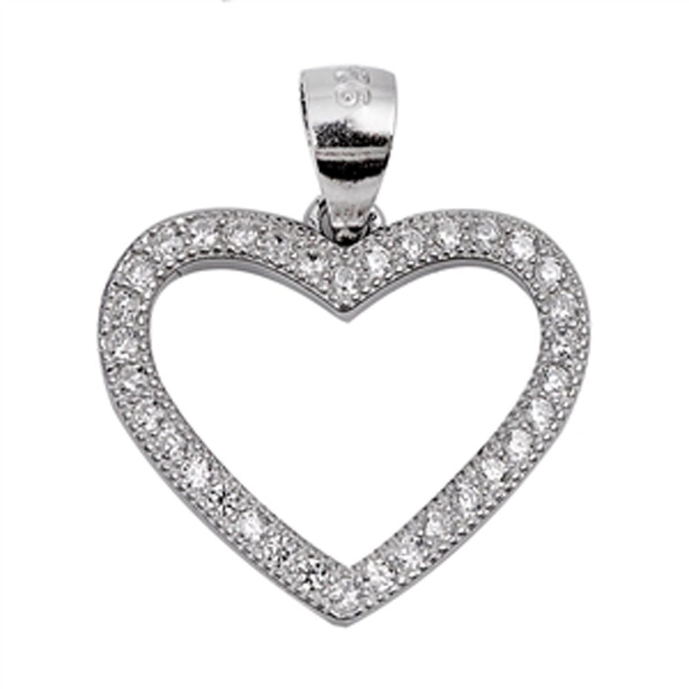Sterling Silver Pendant Classic Studded Heart Outline Clear Simulated CZ Charm