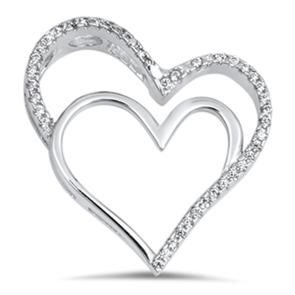 Double Heart Outline Pendant .925 Sterling Silver Connected Love Pendant Charm