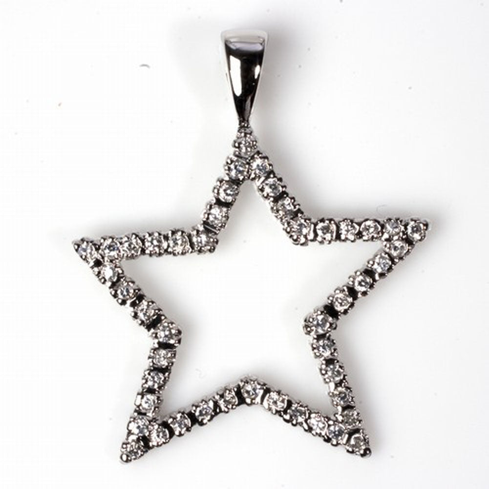 Sterling Silver Clear CZ Star Outline Pendant Simple Endless Cluster Charm 925
